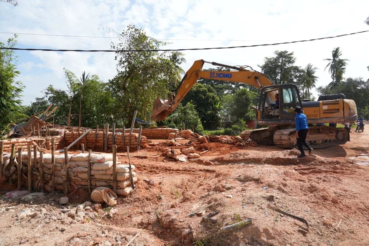 Dalam penertiban, Ditpam BP Batam mengerahkan ekskavator untuk membongkar tempat penampungan pasir yang telah dicuci.